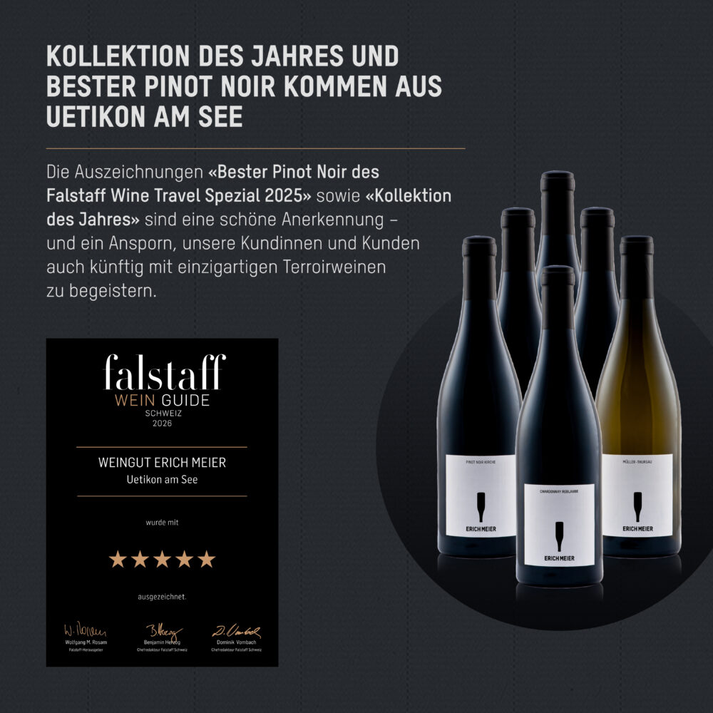 Die Auszeichnungen «Bester Pinot Noir des Falstaff Wine Travel Spezial 2025» sowie «Kollektion des Jahres» sind eine schöne Anerkennung – und ein Ansporn, unsere Kundinnen und Kunden auch künftig mit einzigartigen Terroirweinen zu begeistern. Unser Weg ist, wie von Falstaff beschrieben, klar: eher weniger, dafür extremer.